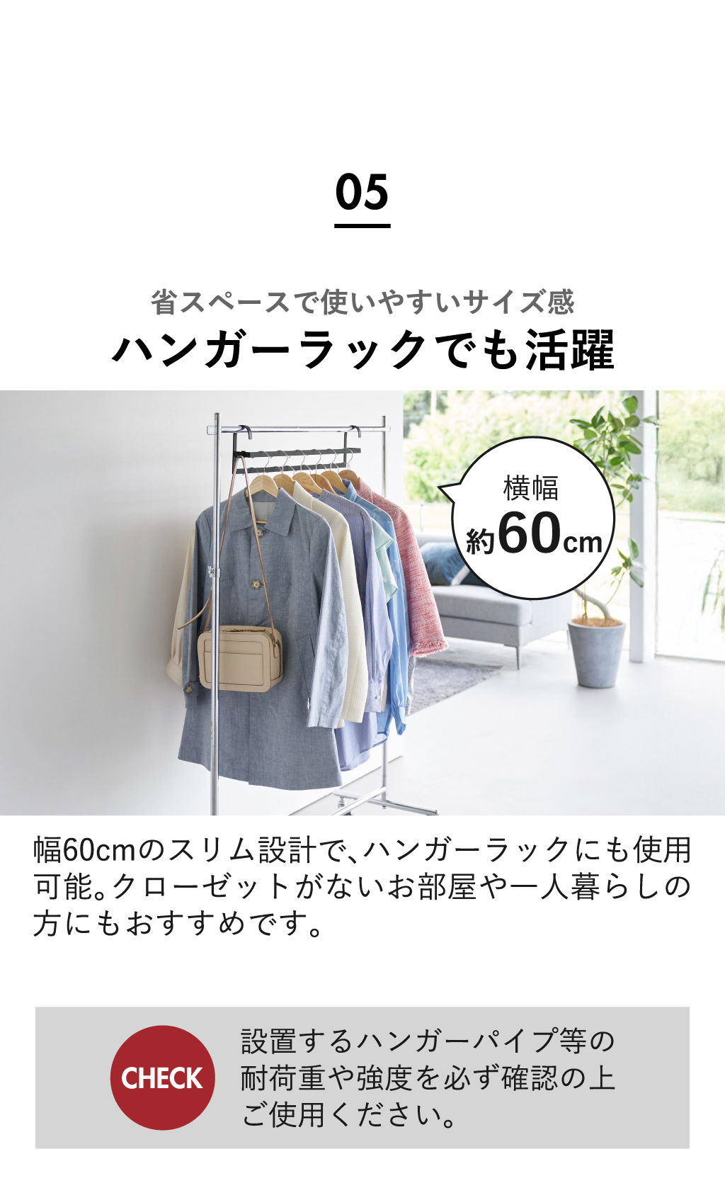 クローゼットだけでなくハンガーラックやリビングでも活躍します。