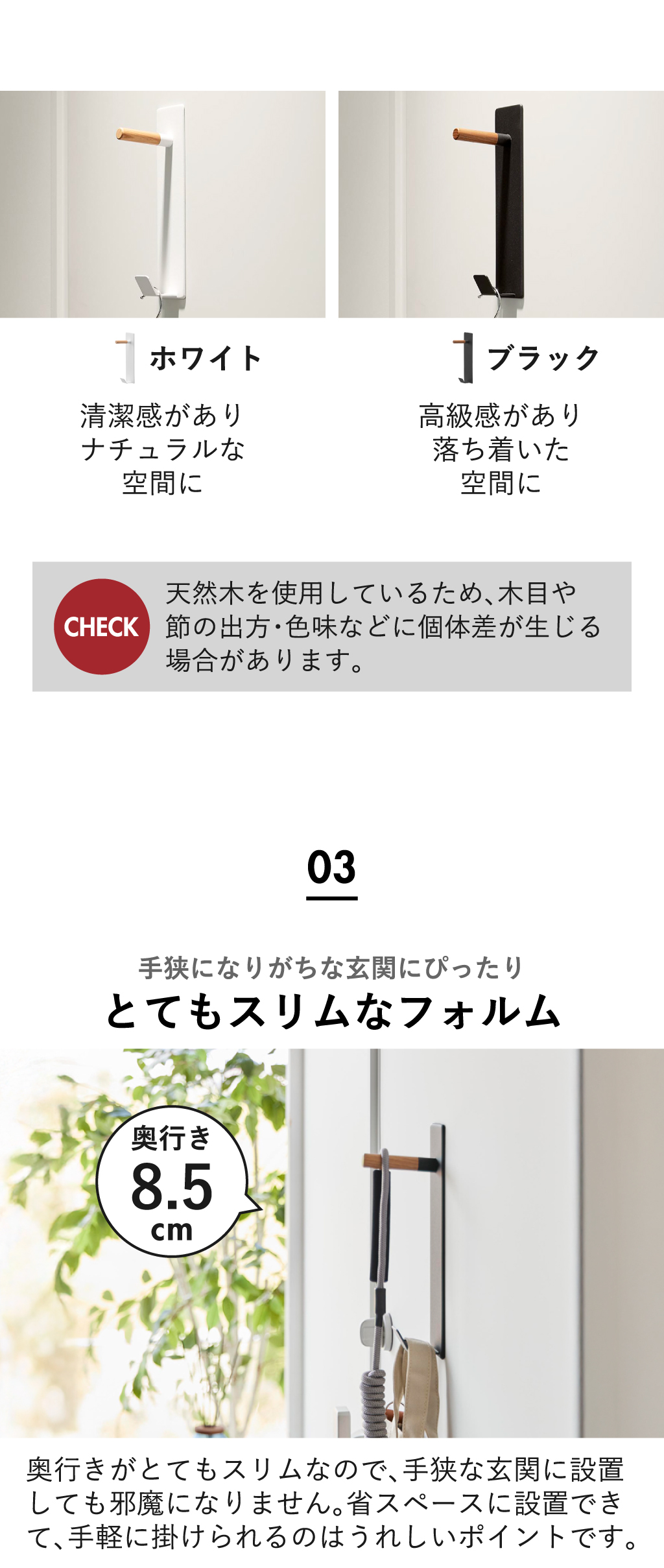 スリムコートハンガーラックは奥行きがとてもスリムなので、手狭な玄関にもぴったり。
