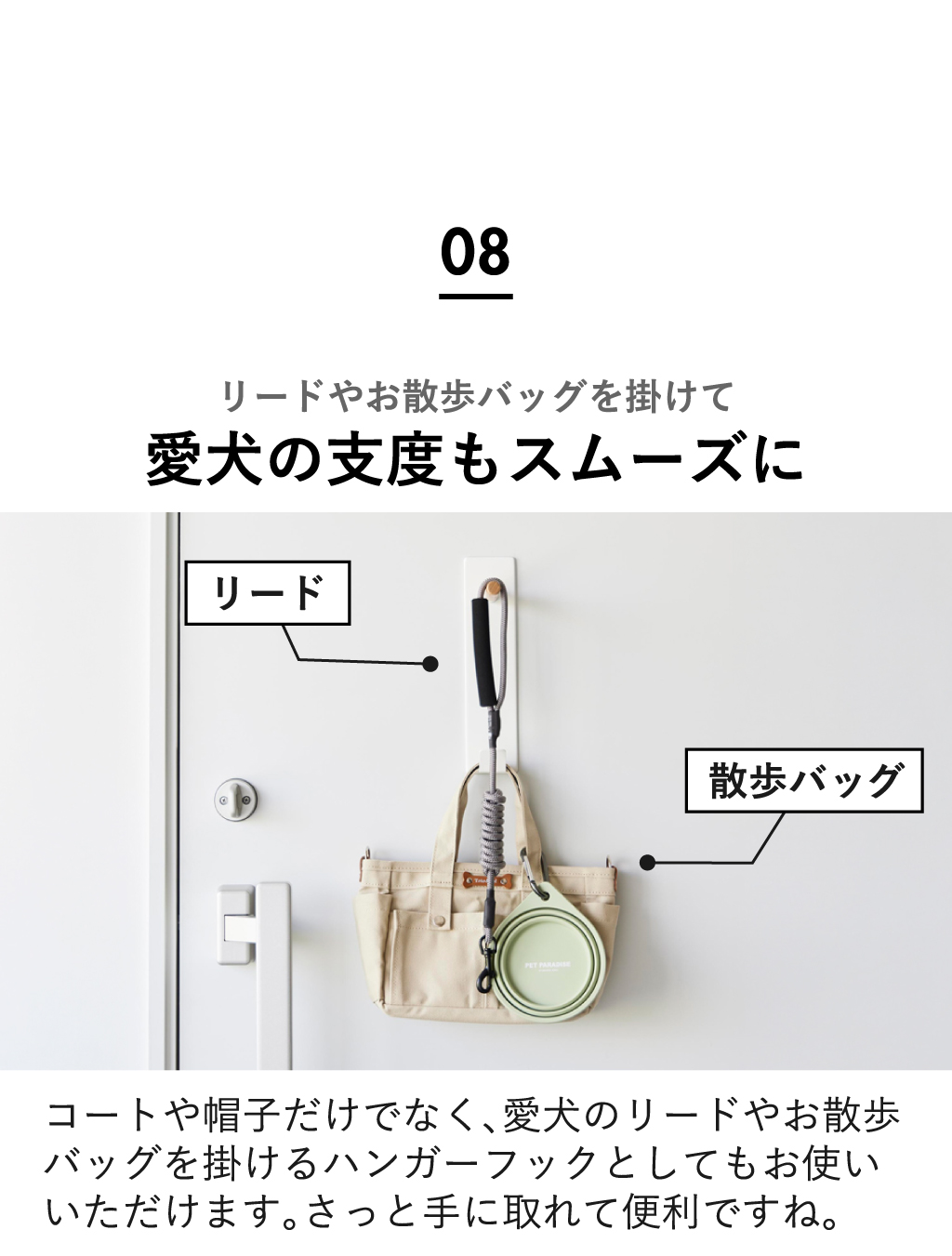 愛犬のリードやお散歩バッグをかける壁掛けコートハンガーラックとしても◎。