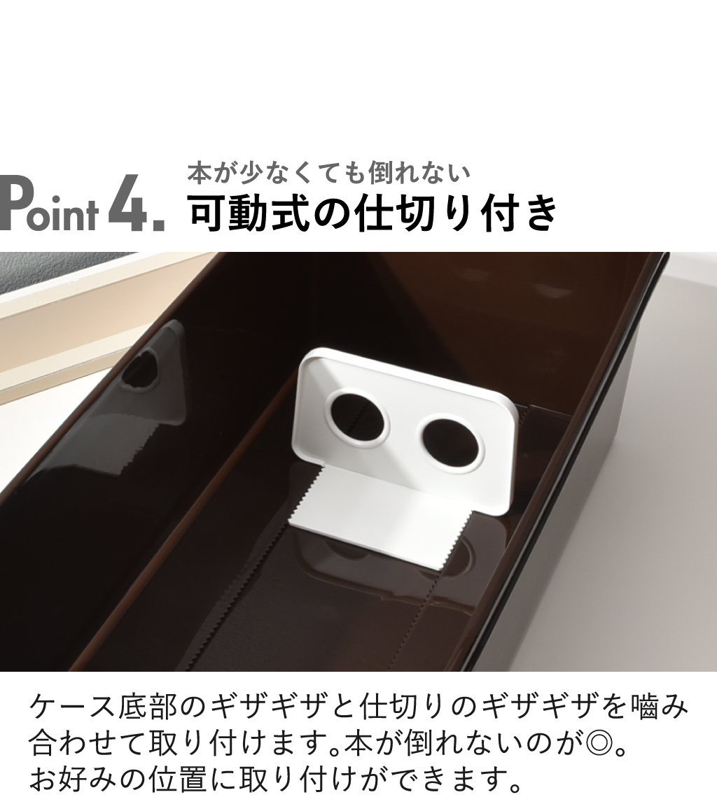 仕切り板が付属しているので、収納したものが倒れるのを防止できます。