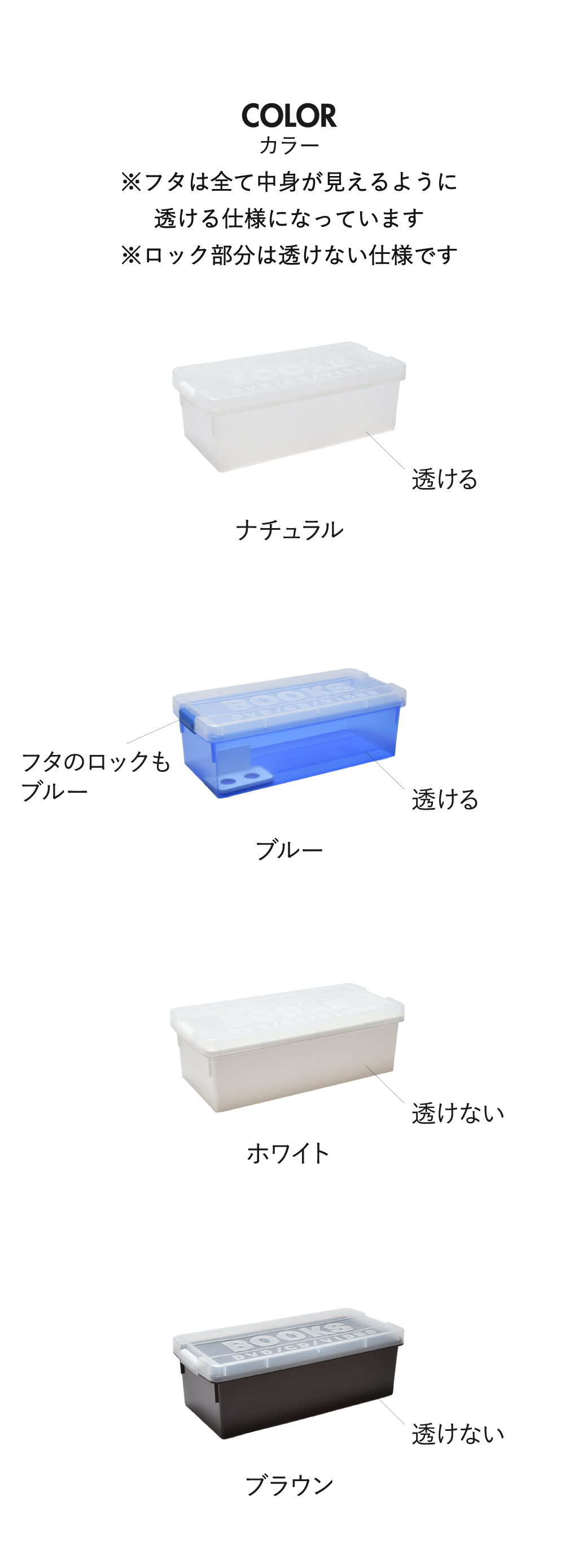 クリアケースの色は、4色からお選びいただけます。