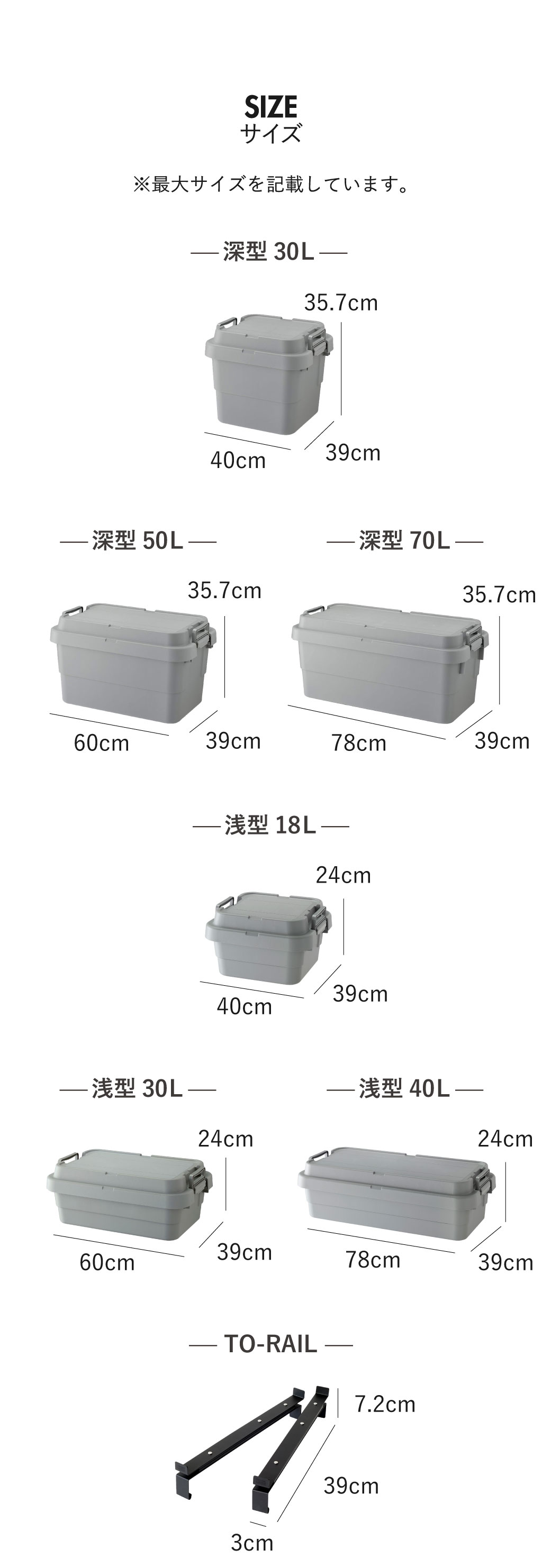 収納ボックスは深型と浅型の2タイプ。豊富なシリーズ展開のコンテナボックスなので、