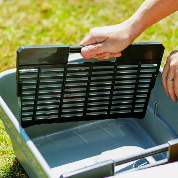 べルトガイド付きなので、運搬や車移動のときに安心して運ぶことができます。 普段からまとめて収納して、車のトランクへそのまま載せれば時間短縮になります。また、スタッキングも可能です。