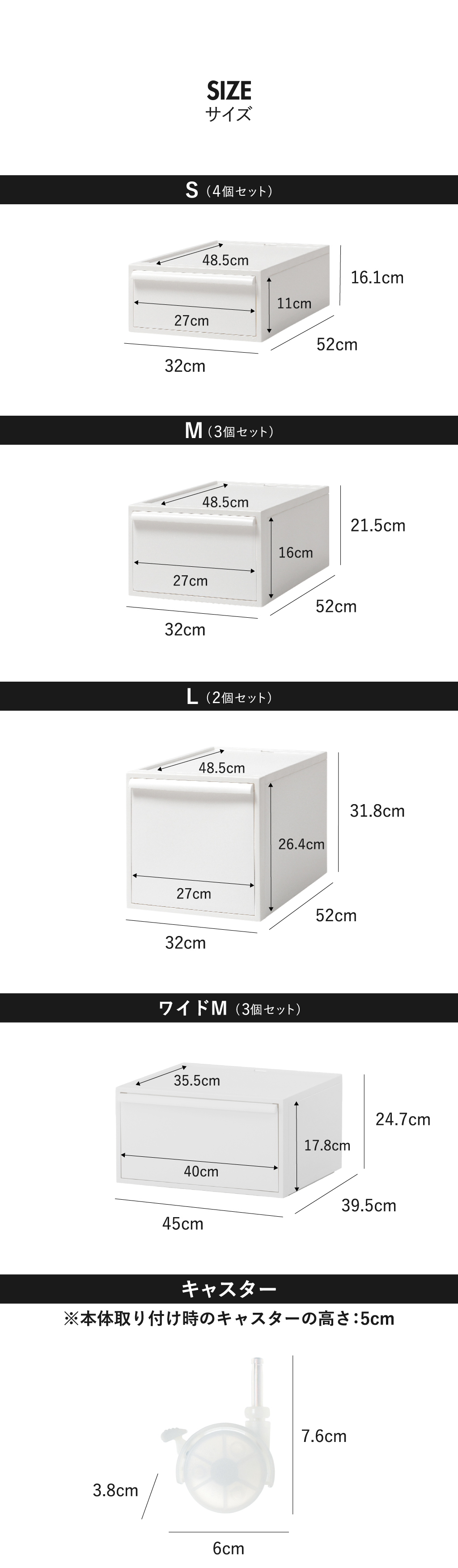 ※こちらはクローゼットシステム 引出しS/M/Lの商品ぺージです。