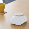 やさしい質感でおモチのようなモチッとした雰囲気を陶器で表現しています。プラスチックケースにはないぬくもりあるデザイン、ナチュラルさを引き立てる木製の木フタ、清潔感のあるホワイトカラー、どんなお部屋にもなじむデザインです。