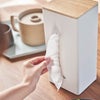 モノトーンの本体にあたたかみのある木目調のフタを組み合わせたおしゃれなティッシュケースです。ペーパーを収納するだけで、生活感のない美しい空間を演出します。ティッシュだけでなく、ペーパータオルやポリ袋の収納にも◎。