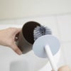 ブラシは自在に曲がり、とがった毛先が便器のふちの裏側の汚れをかき落とします。