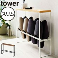 スリムなのにスリッパは4足きちんと入り、台もあるので物も置けます。 うちはワンコの足拭きグッズを置いています。