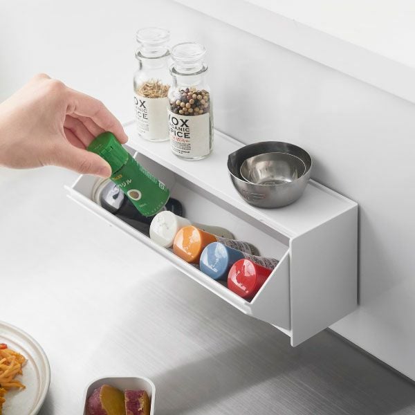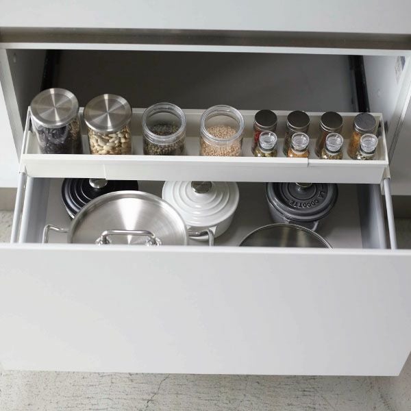 他の画像を見る 引き出しのサイドバーに引っ掛けて使える伸縮性のキッチンラック 山崎実業 伸縮キッチン引き出し中ラック タワー tower | キッチン雑貨・タワーシリーズ 価格 ¥ 3,350 税込 お気に入りに登録する (0)