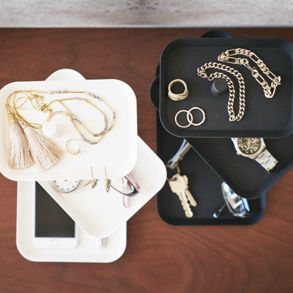 他の画像を見る ネックレスや腕時計を美しく収納できる2段タイプのアクセサリーケース 山崎実業 トレー付きスリムアクセサリー&時計ケース リン RIN | インテリア雑貨・リンシリーズ 価格 ¥ 3,850 税込 お気に入りに登録する (0)